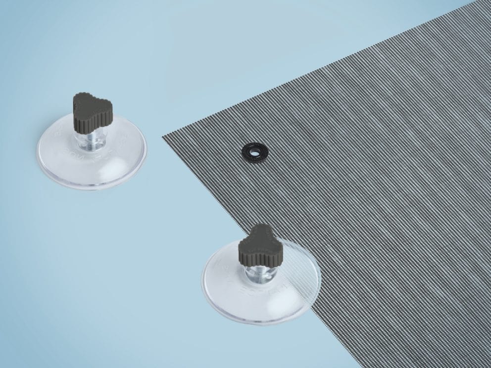 De screens worden met speciale zuignappen geleverd. Met deze zuignappen bevestig je het screen gemakkelijk op elk vlak raam zonder te boren of te schroeven.